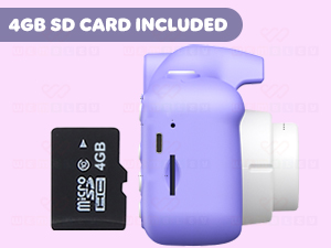 【TYPE-C & SD CARD SLOT】This kid's camera features a Type-C USB rechargeable port for easy charging via PC or external power supply. The SD card slot is expandable up to 32GB, with a 4GB SD card included for immediate use. Perfect for storing and capturing fun moments.