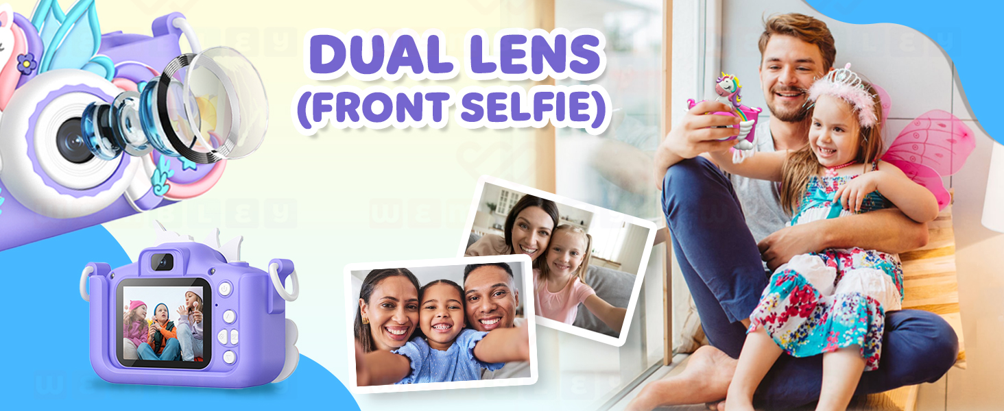 【DUAL CAMERA FUNCTION】 The camera for kids comes with a front and back camera, allowing seamless switching with a dedicated button. Children can easily switch between cameras to take selfies or capture their surroundings. It offers a fun and interactive way for kids to explore photography with this digital camera for kids.