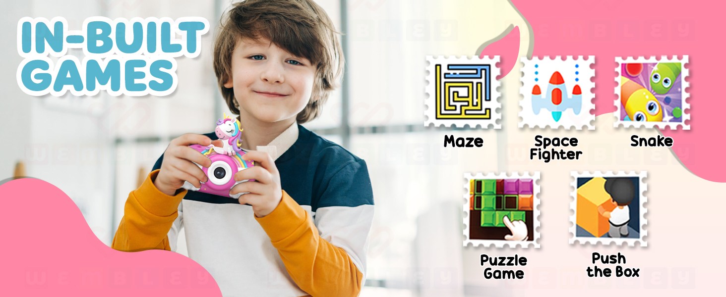 【MULTIPLE FEATURES】 The mini camera for kids features multiple functions, including a camera, MP3 player, video recording, games, and a gallery. It’s an all-in-one device that keeps kids entertained for hours while nurturing their creativity and multimedia skills. The perfect digital companion for kids' adventures.